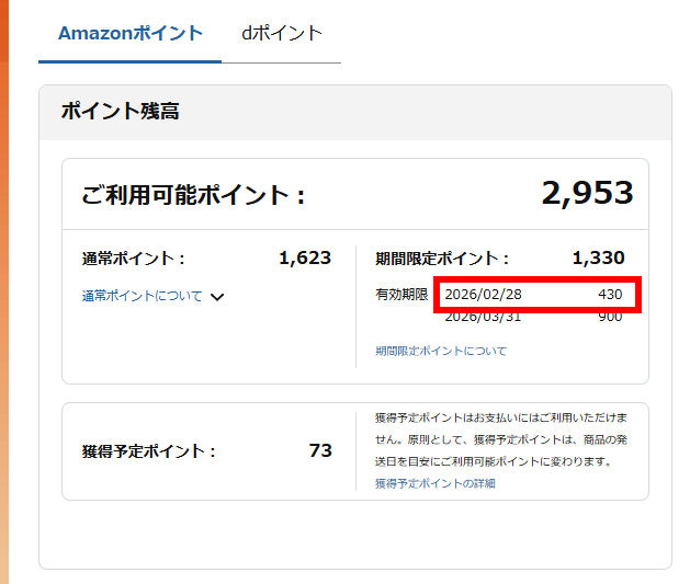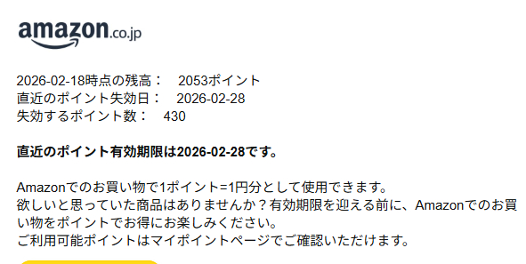2/28で430ポイント失効?!430ポイントはでかい!!