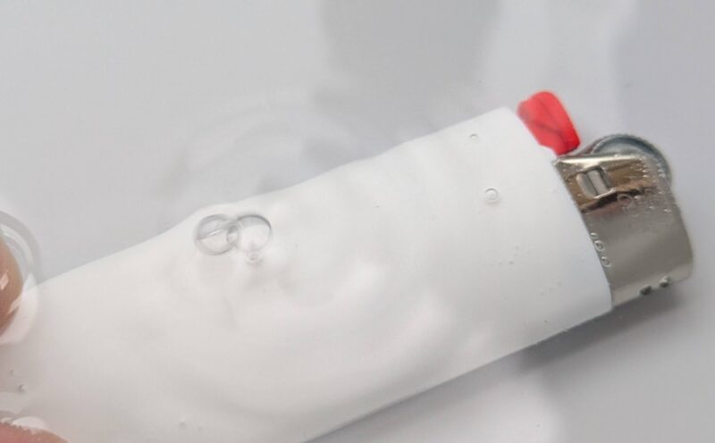 ドリルがもしかしたら錆びちゃうかもしれませんけどそれはその時ということで、容器に水を入れて、ライターを沈めた状態でおそるおそるゆっくりと……。