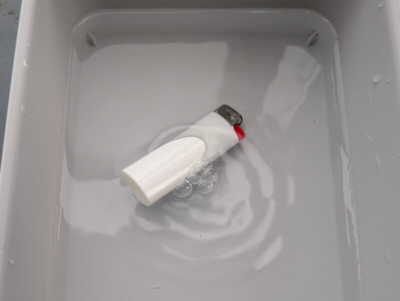 中身が残っているガス缶に穴開けるのはあまりにも危険すぎるだろうけど、ライター程度なら小っちゃい穴を水中で開けたりしたらいけるのでは……?