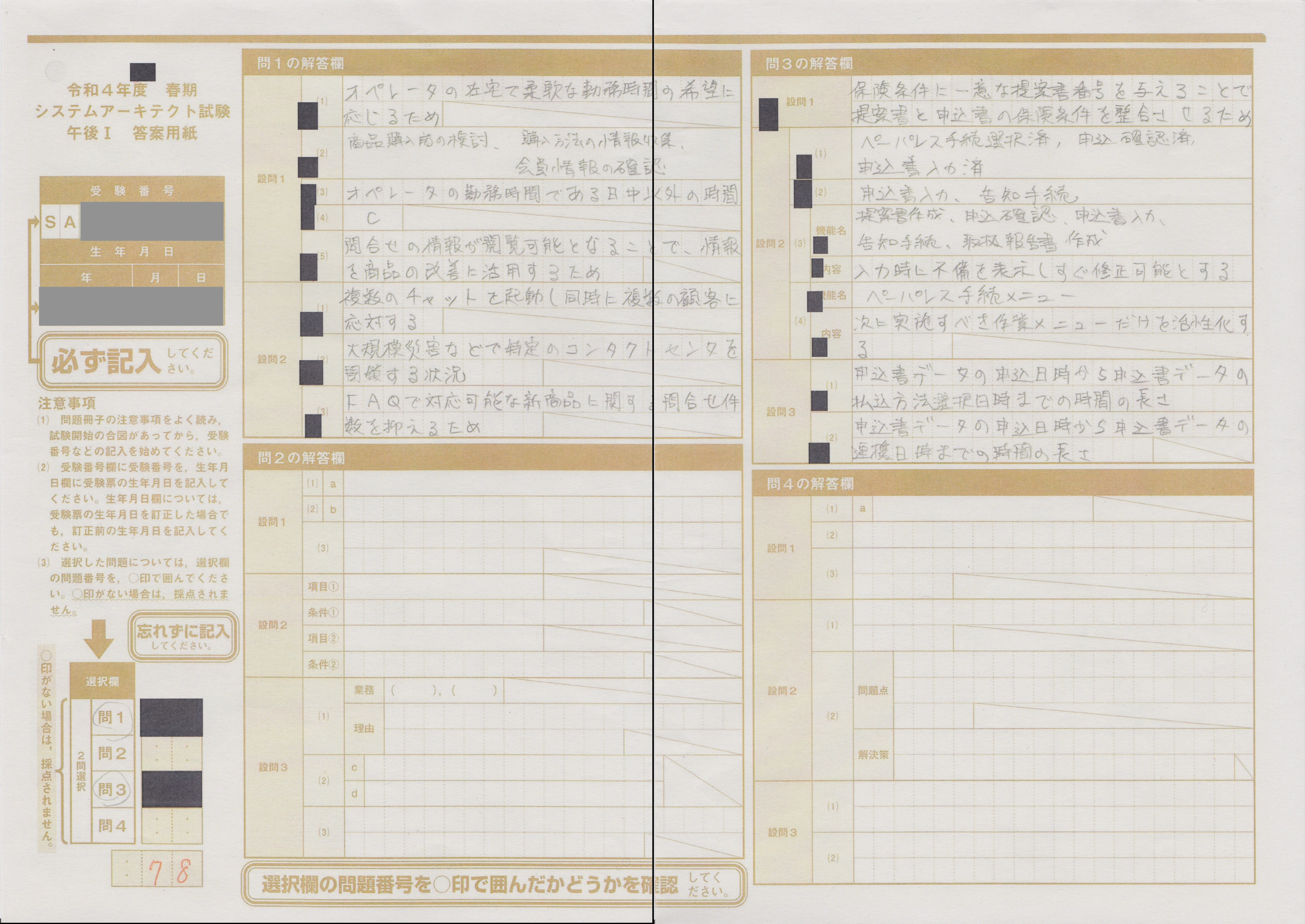 というわけで、今回のメインは論文なのですけどもそれだけでなくて全ての答案を請求してみたので順番に見ていきます。
